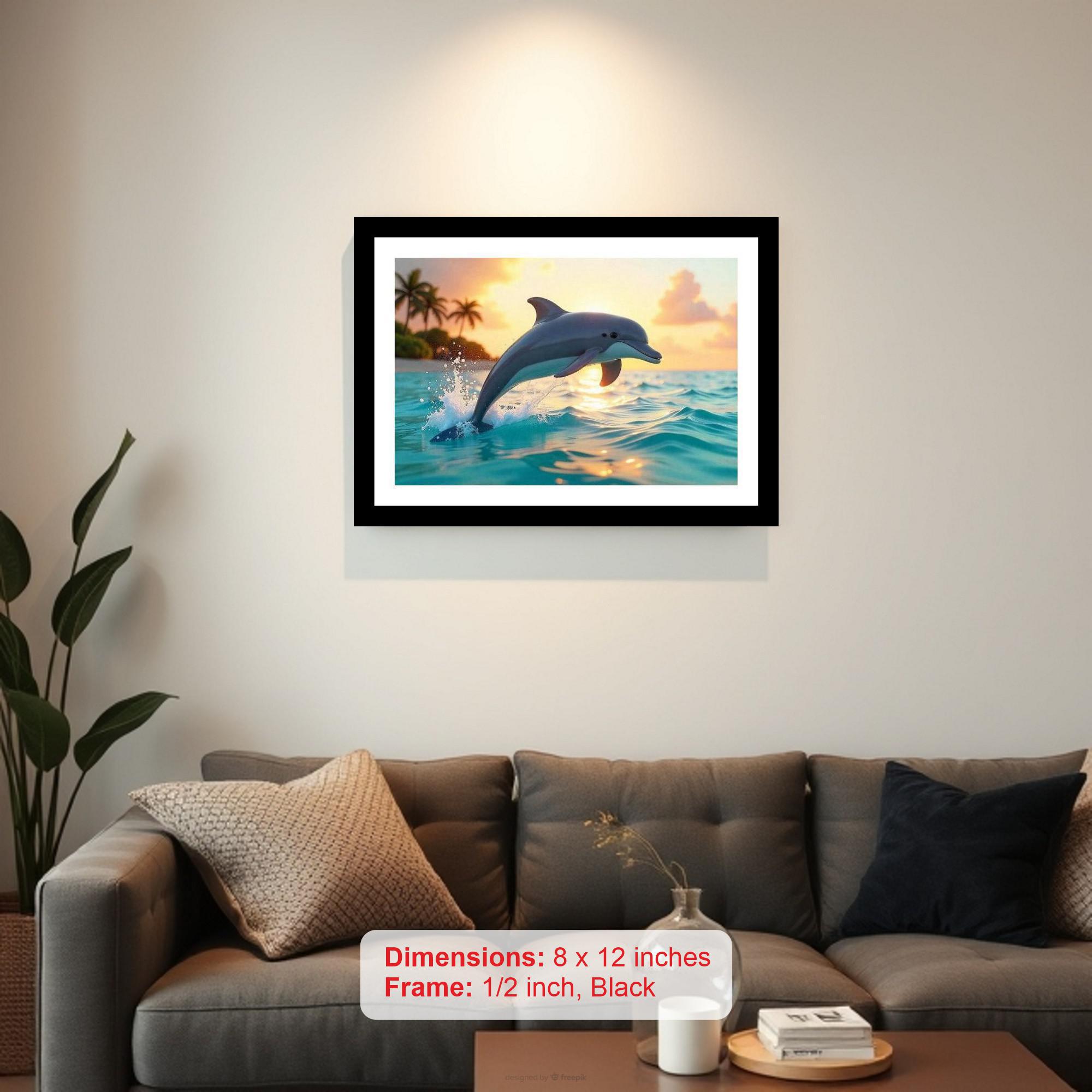 Capture the timeless beauty of the ocean with this elegant classic black framed digital reprint. Witness a majestic dolphin leaping through sunset waves near a tropical beach, frozen in a moment of breathtaking grace. This stunning piece of art evokes a sense of tranquility and wonder, perfect for adding a touch of coastal charm to any room. The high-quality digital reprint captures the vibrant colors of the sunset and the playful energy of the dolphin, while the classic black frame adds a touch of classic sophistication. Ideal for living rooms, bedrooms, offices, or any space seeking a serene focal point. Bring the beauty of the tropics into your home with this captivating artwork.