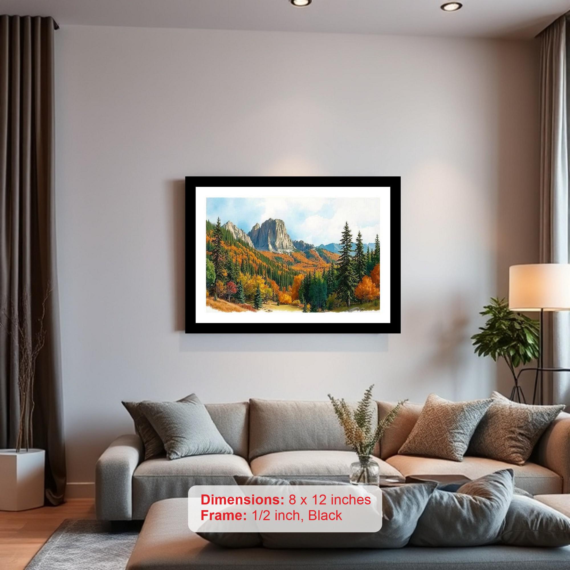 Immerse yourself in the breathtaking beauty of nature with our exquisitely framed digital reprint of a captivating mountain landscape painting. This stunning piece transports you to a serene vista, where majestic peaks rise dramatically against a vibrant sky, their slopes adorned with lush greenery that cascades down to the very foot of the mountain. The artist's masterful brushstrokes capture the play of light and shadow across the rugged terrain, highlighting the textures of the rocks and the delicate nuances of the foliage. The composition is carefully balanced, drawing the eye through the scene and creating a sense of depth and perspective that invites you to step into the artwork. Our high-quality digital reprint faithfully reproduces the original painting's colors, details, and textures, ensuring a vibrant and long-lasting image. The artwork is professionally framed in a elegant black frame that complements the painting's style and enhances its overall aesthetic appeal. Ready to hang and instantly transform any room, this framed print is a perfect addition to your living room, bedroom, office, or any space where you seek a touch of tranquility and natural beauty. Bring the majesty of the mountains into your home and let this captivating artwork inspire and uplift your spirit every day. It also makes a thoughtful and memorable gift for nature lovers, art enthusiasts, and anyone who appreciates the beauty of the great outdoors.