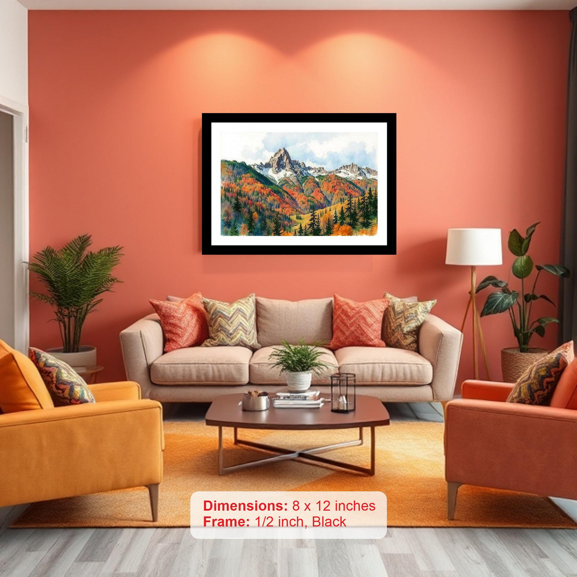 Majestic Mountainscape Portrait: Stony Peaks & Lush Foothills. Photo Frame With Photo, Wall Hanging Art, Wall Decor, Home Decor, Picture Frame | Size: 8 x 12 inches