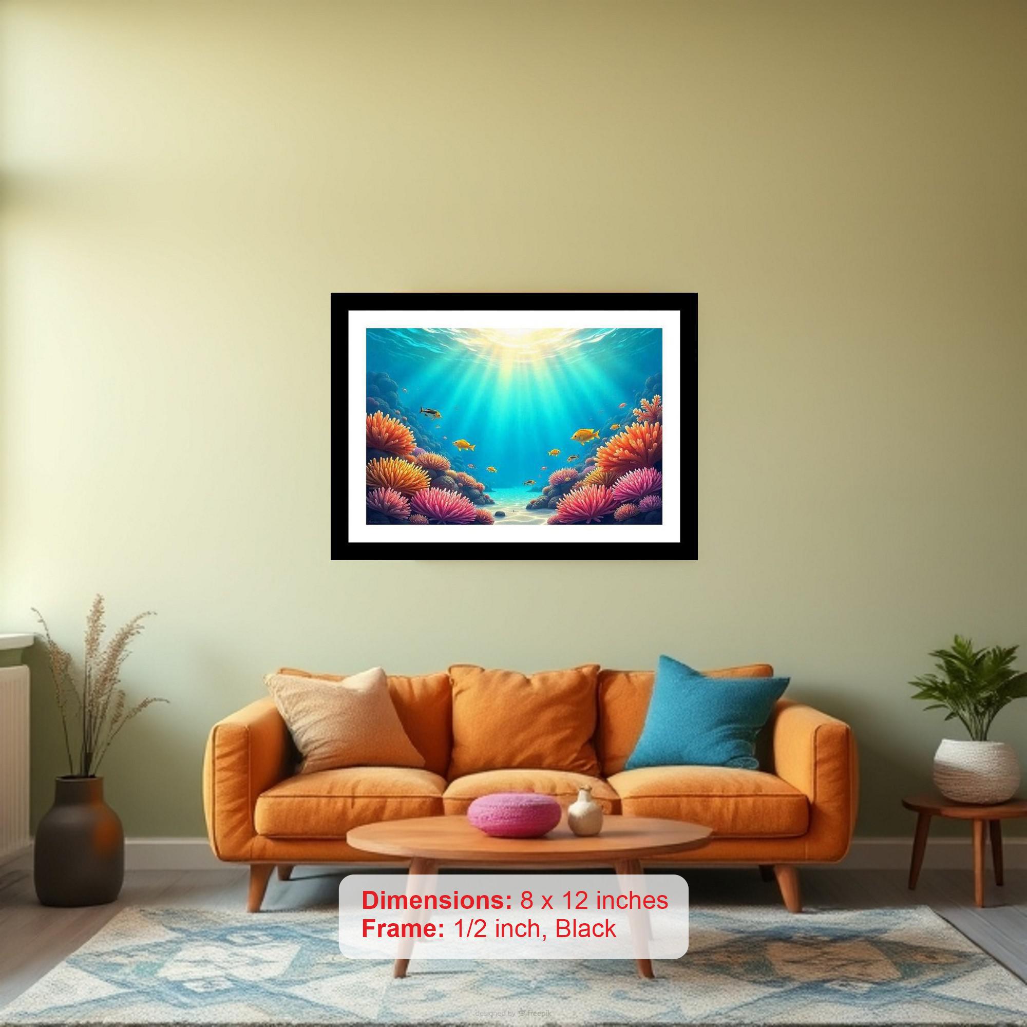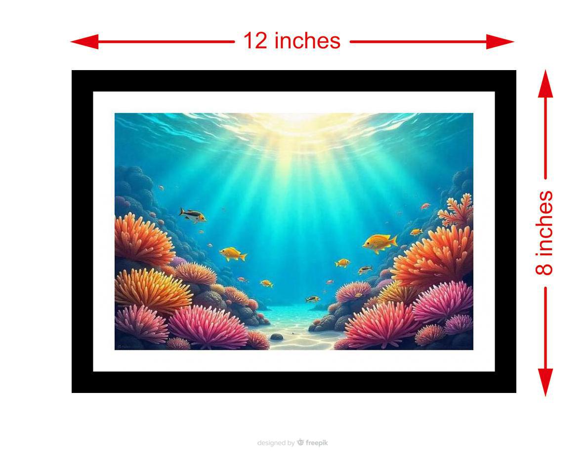 Sunbeams dance on a vibrant reef, showcasing a kaleidoscope of fish in a breathtaking underwater spectacle! Colors pop and the print is so crisp, you'd think it was an original. The reprint's masterful composition breathes new life into the photograph, a truly stunning visual experience. Versatile Decor: Ideal for enhancing the aesthetic appeal of living rooms and bedrooms Enhanced Durability: Weather-shield laminated digital print for lasting vibrancy and protection Premium Framing: Constructed with a high-quality, durable fiber frame for long-term stability Precise Dimensions: 30 cm x 20 cm x 1 cm
