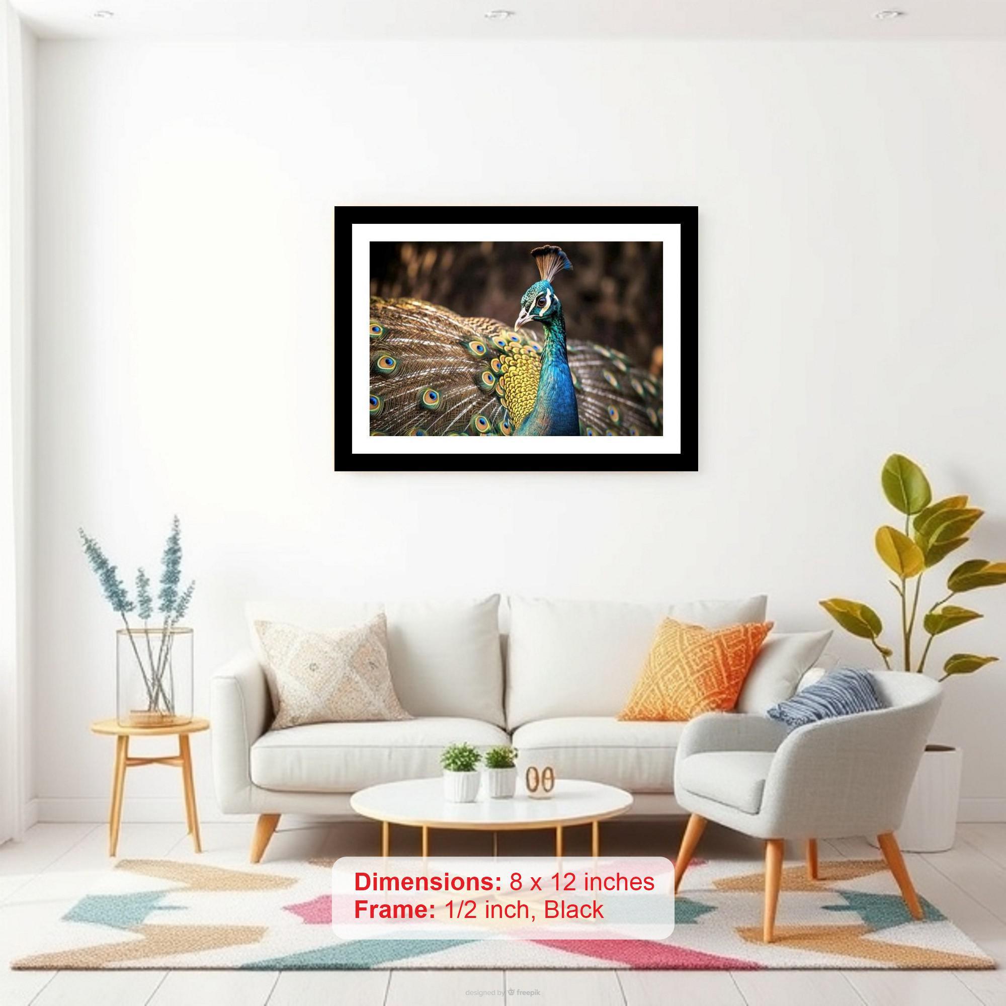 Iridescent Peacock Display: Stunning Feathered Majesty. Wall Art, Interior Accents, Framing Solutions, Residential/Commercial Decor, Premium Gifts | Size: 8 x 12 inches