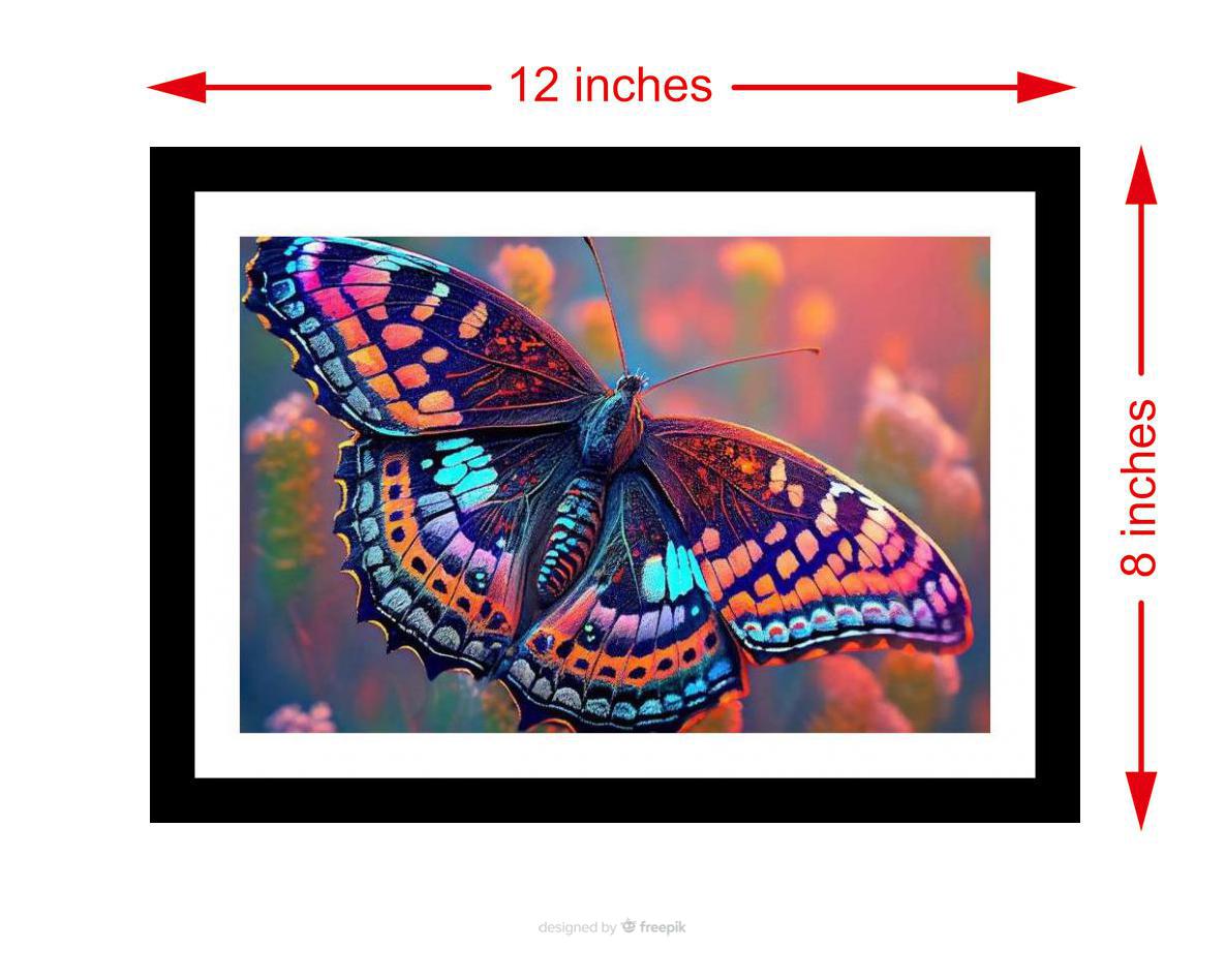 Iridescent butterfly explodes with color against soft floral blur, a captivating miniature masterpiece. The colors are vibrant and the print is so sharp, it's like looking through a window. The digital reprint boasts a strikingly composed image, beautifully capturing the original photograph's artistic merit. Versatile Decor: Ideal for enhancing the aesthetic appeal of living rooms and bedrooms Enhanced Durability: Weather-shield laminated digital print for lasting vibrancy and protection Premium Framing: Constructed with a high-quality, durable fiber frame for long-term stability Precise Dimensions: 30 cm x 20 cm x 1 cm