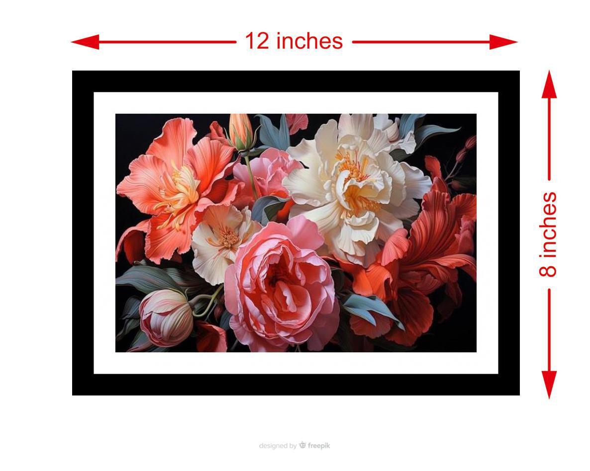 A stunning contrast: luminous coral and cream blooms pop against a dramatic, dark backdrop. The reprint's vibrant colors and sharp details perfectly captured the photo's original beauty - stunning! The reprint's composition is stunning; balanced elements & sharp focus make it truly captivating. Versatile Decor: Ideal for enhancing the aesthetic appeal of living rooms and bedrooms Enhanced Durability: Weather-shield laminated digital print for lasting vibrancy and protection Premium Framing: Constructed with a high-quality, durable fiber frame for long-term stability Precise Dimensions: 30 cm x 20 cm x 1 cm