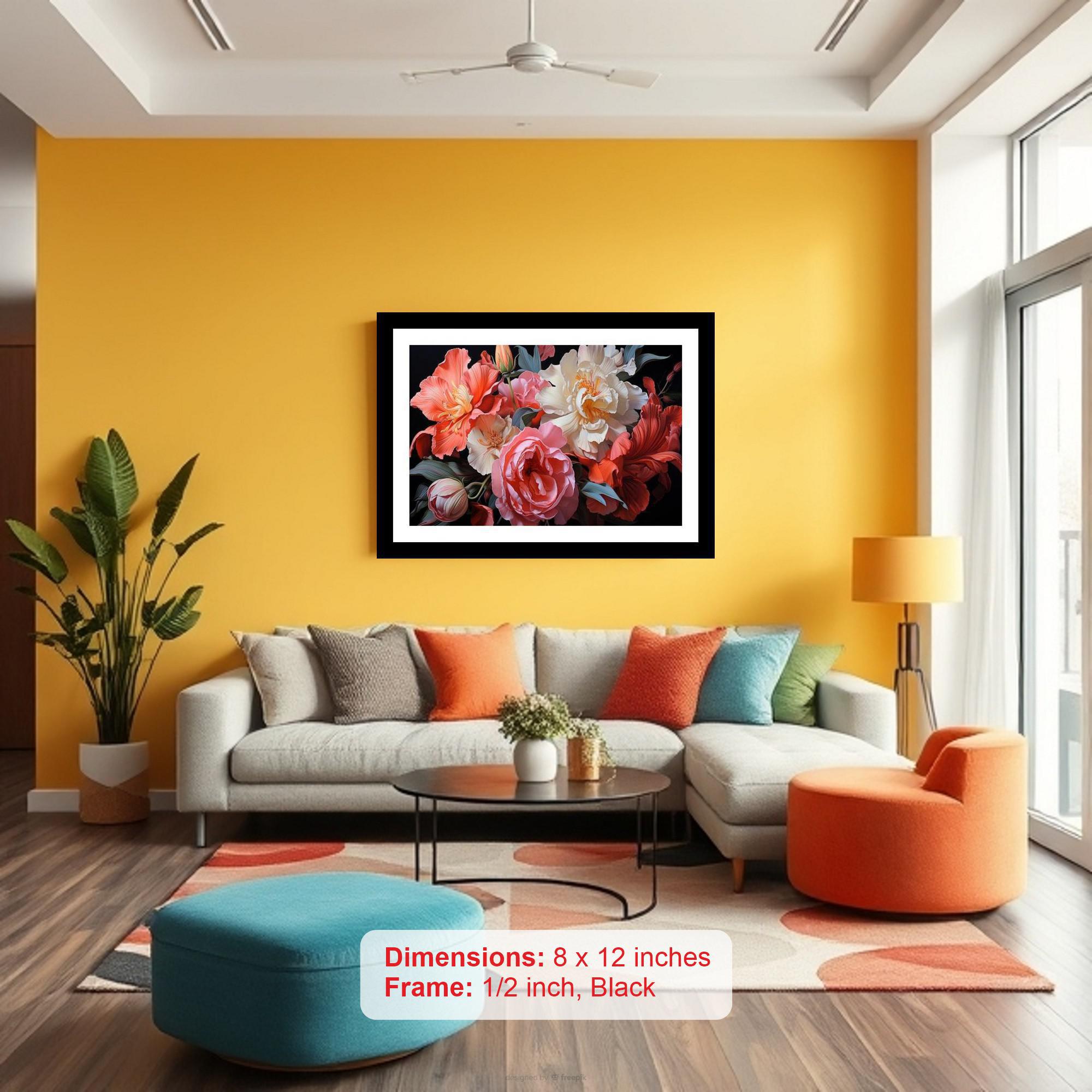 Elevate your home decor with this exquisite vintage-inspired digital reprint featuring a stunning bouquet of coral and cream flowers bursting with life against a dramatically dark backdrop. Encased in a meticulously crafted black frame, this piece exudes timeless elegance and adds a touch of sophistication to any room. The vibrant colors of the blossoms are beautifully contrasted by the deep shadows, creating a captivating focal point that draws the eye. Perfect for living rooms, bedrooms, hallways, or offices, this framed print is a simple yet impactful way to infuse your space with classic charm and a hint of floral artistry. It also makes a thoughtful gift for flower lovers, art enthusiasts, or anyone who appreciates vintage aesthetics.
