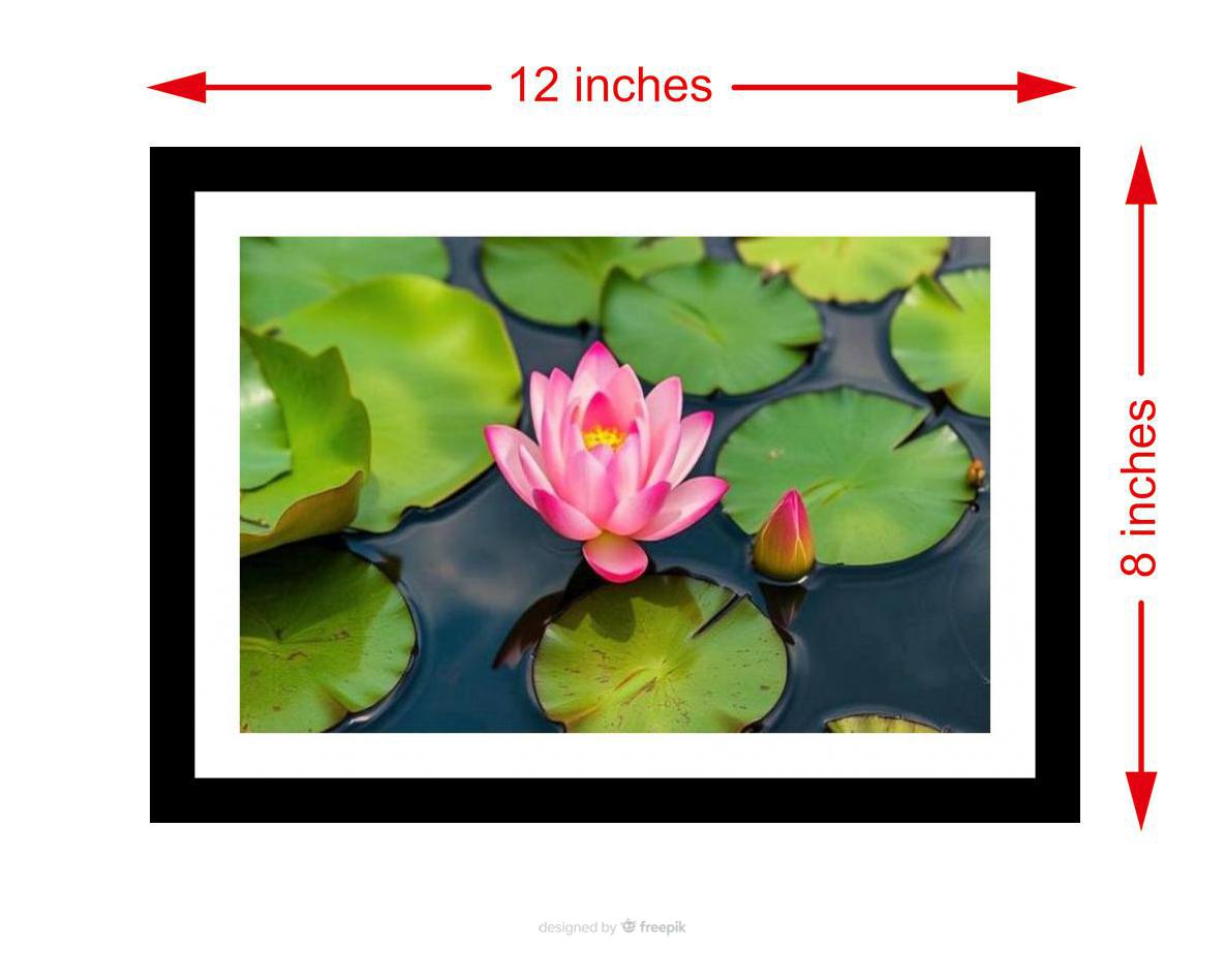 A serene pink water lily blooms beautifully amidst a vibrant green lily pad haven. The colors pop, and the print is so sharp, it's like seeing the original anew. The reprint boasts a striking composition, faithfully capturing the photograph's beauty with stunning clarity. Versatile Decor: Ideal for enhancing the aesthetic appeal of living rooms and bedrooms Enhanced Durability: Weather-shield laminated digital print for lasting vibrancy and protection Premium Framing: Constructed with a high-quality, durable fiber frame for long-term stability Precise Dimensions: 30 cm x 20 cm x 1 cm