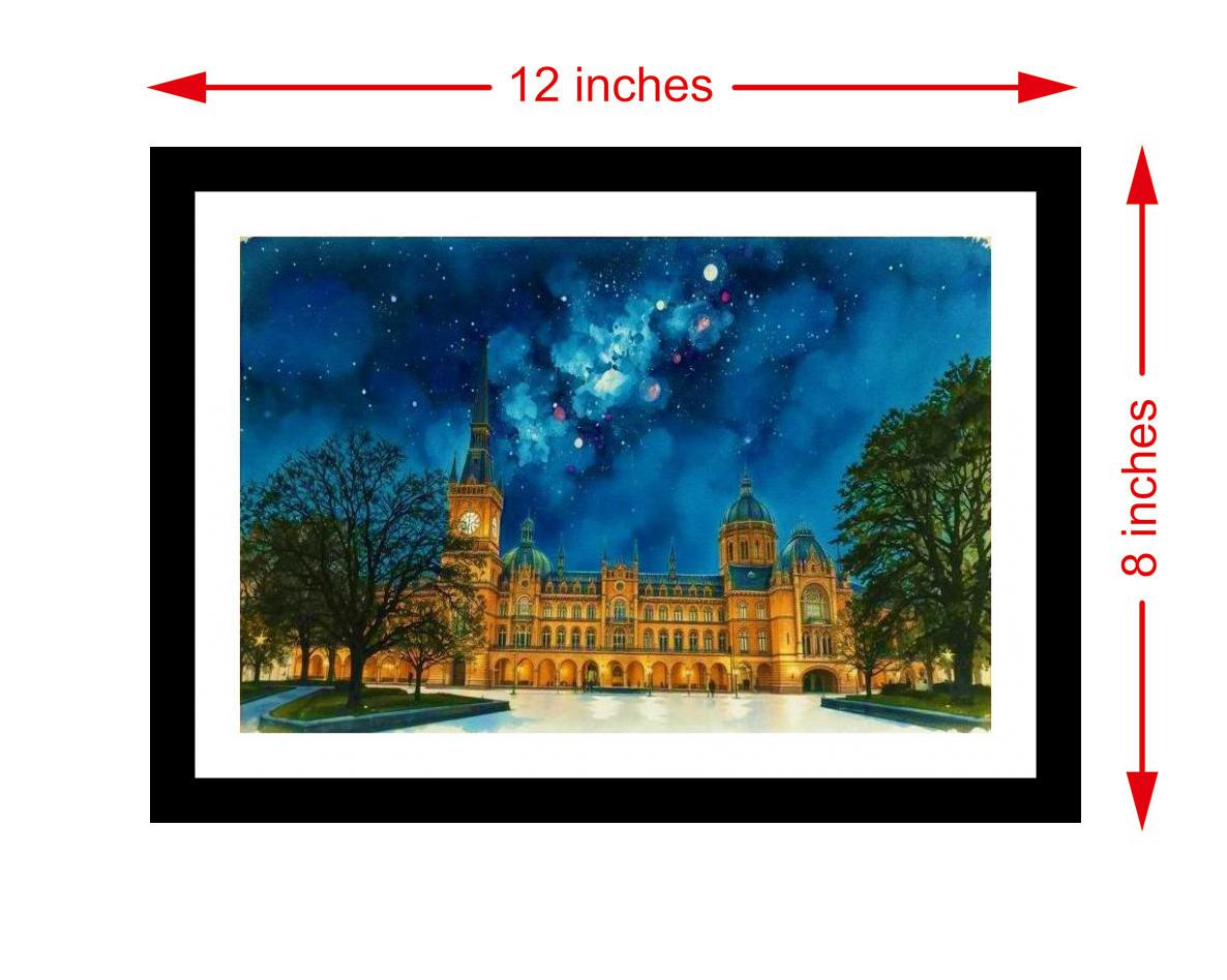 A stunning Victorian palace bathed in a vibrant night sky—a masterpiece! The reprint bursts with vibrant color and crisp detail, truly capturing the portrait's original beauty. The digital reprint boasts a striking composition, truly capturing the portrait's original beauty and artistry. Versatile Decor: Ideal for enhancing the aesthetic appeal of living rooms and bedrooms Enhanced Durability: Weather-shield laminated digital print for lasting vibrancy and protection Premium Framing: Constructed with a high-quality, durable fiber frame for long-term stability Precise Dimensions: 30 cm x 20 cm x 1 cm