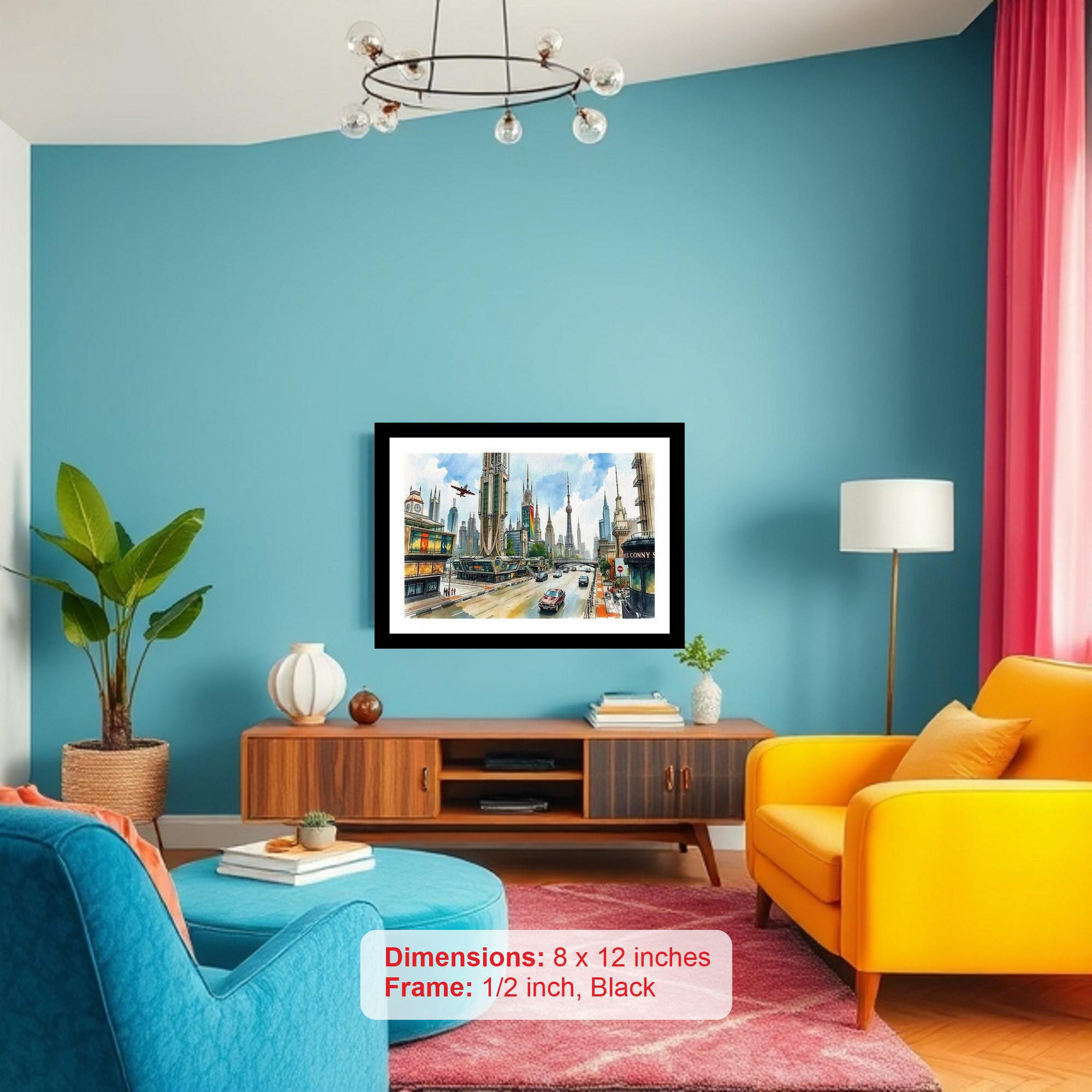 Futuristic Metropolis Watercolor Portrait: Envisioning the City of Tomorrow, Photo Frame With Photo, Wall Hanging Art, Wall Decor, Home Decor, Picture Frame | Size: 8 x 12 inches