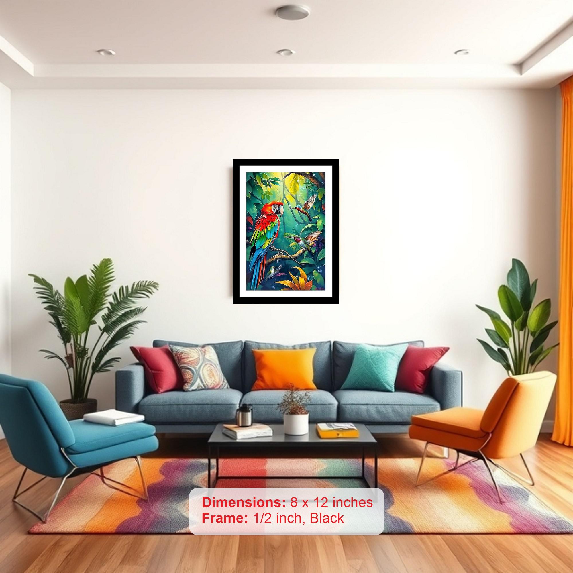 Vibrant Parrot Jungle Portrait: Serene Beauty Photo Frame With Photo, Wall Hanging Art, Wall Decor, Home Decor, Picture Frame | Size: 8 x 12 inches