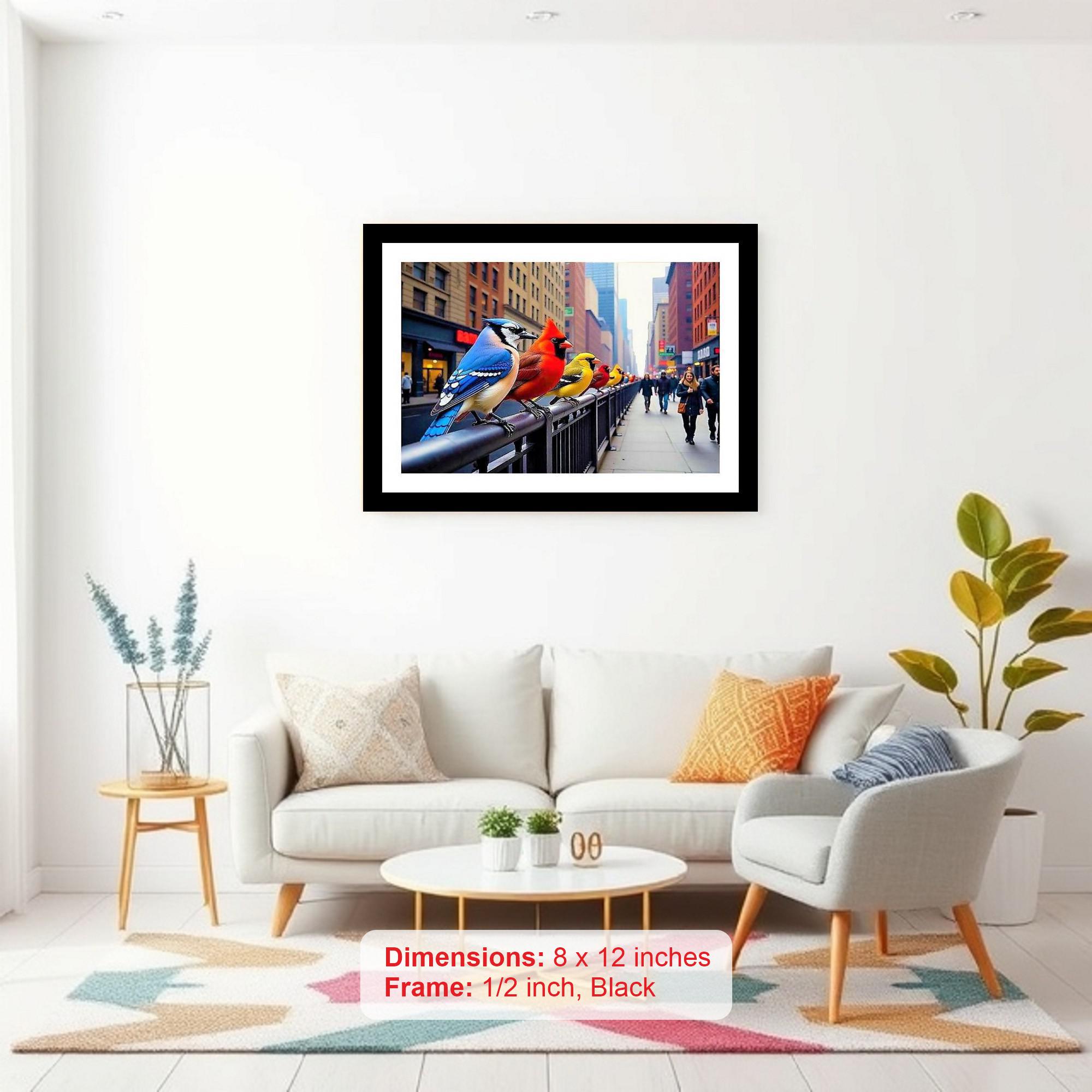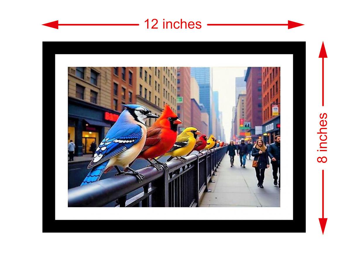 Vibrant birds on a stark fence: a stunning urban contrast, beautifully capturing nature's resilience and color. The colors pop, the details are crisp - a true testament to the original portrait's beauty. The digital reprint's striking composition flawlessly captures the portrait's beauty and artistry. Versatile Decor: Ideal for enhancing the aesthetic appeal of living rooms and bedrooms Enhanced Durability: Weather-shield laminated digital print for lasting vibrancy and protection Premium Framing: Constructed with a high-quality, durable fiber frame for long-term stability Precise Dimensions: 30 cm x 20 cm x 1 cm