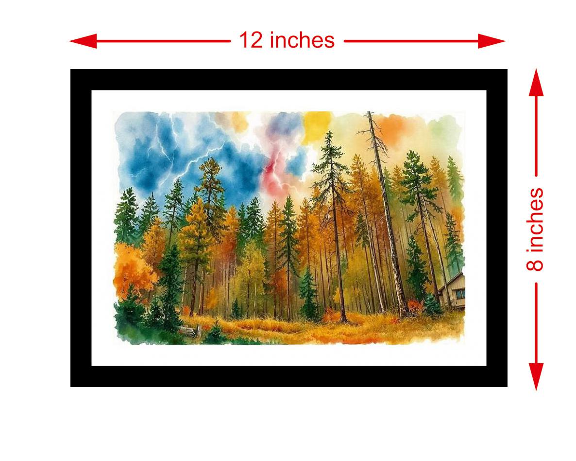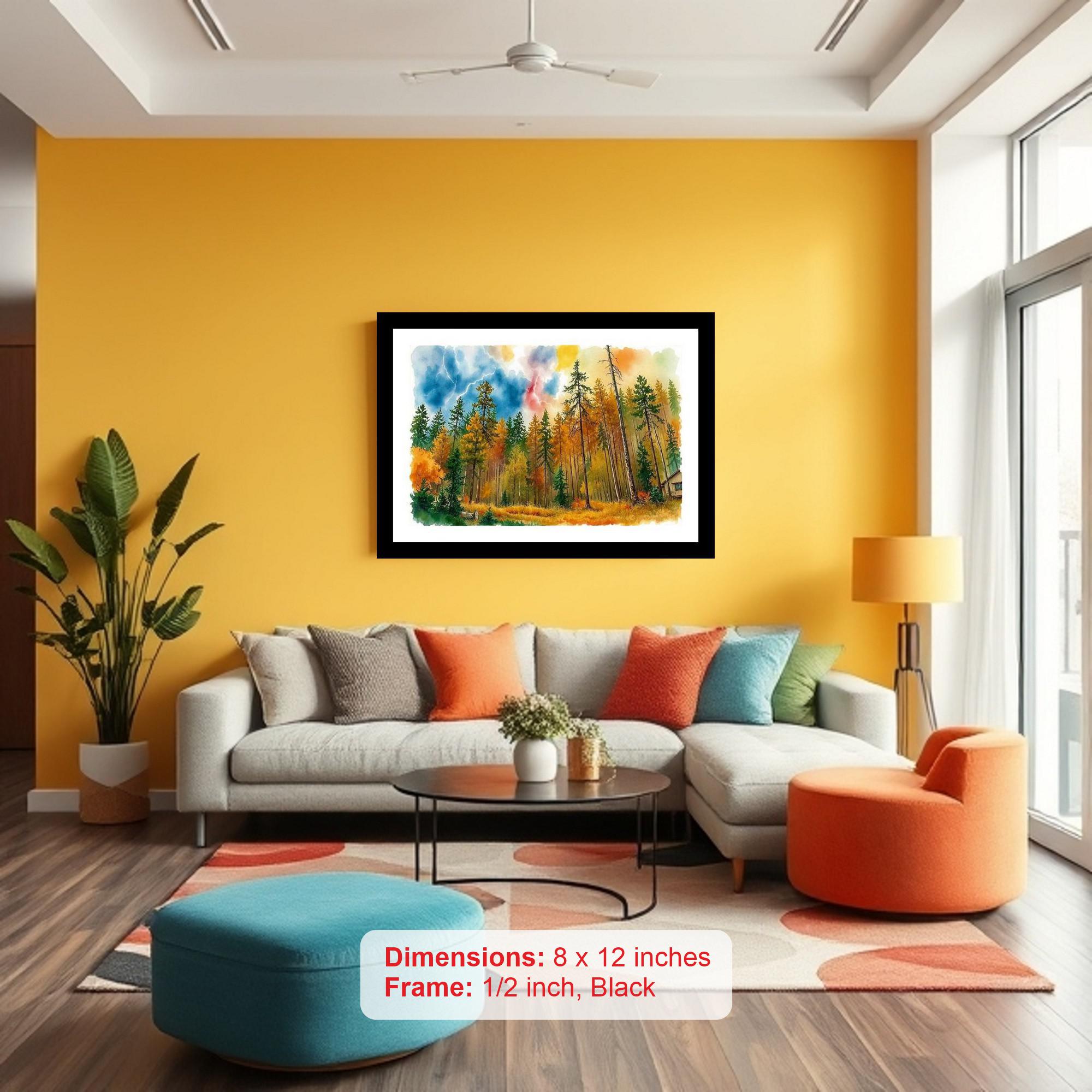 Adorn your walls with timeless elegance. This stunning piece features a high-quality digital reprint of a watercolor painting, showcasing a serene hilly forest densely populated with mountain trees. The soft washes of color and delicate brushstrokes capture the tranquility and natural beauty of a woodland landscape. Encased in a classic black frame, this artwork adds a touch of sophistication and understated charm to any room. Perfect for living rooms, bedrooms, offices, or hallways, it seamlessly complements various interior styles, from modern minimalist to traditional classic. The durable frame ensures lasting beauty, while the protective glazing safeguards the print from dust and fading. Bring the calming influence of nature indoors with this exquisite framed artwork.