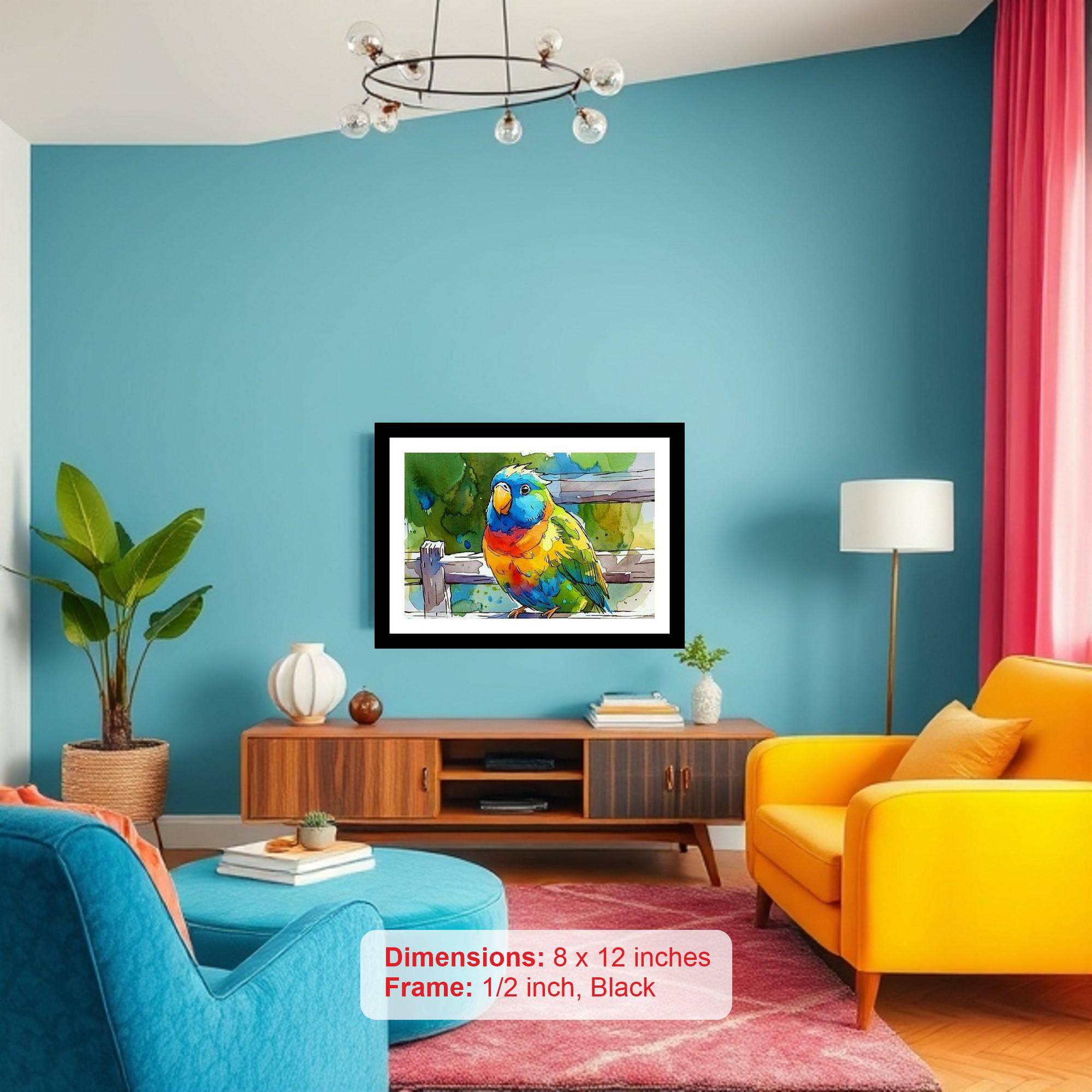 Immerse yourself in the vibrant beauty of the tropics with our classic black Framed Digital Reprint featuring a stunning portrait of a colorful parrot amidst a serene jungle scene. This elegant piece of wall art showcases a magnificent parrot, meticulously rendered in vivid hues, as the focal point of a lush and tranquil jungle environment. The parrot's plumage bursts with radiant reds, blues, greens, and yellows, creating a captivating visual display that draws the eye and enlivens any space. Surrounding the parrot, a symphony of other exotic birds flit through the verdant foliage, adding depth and movement to the composition. Towering trees draped in emerald vines, delicate orchids peeking from the undergrowth, and a subtle mist hanging in the air collectively evoke a sense of peaceful escape. The high-quality digital reprint captures the intricate details and rich color palette of the original artwork, ensuring a lasting impression on your walls. The classic black frame provides a sophisticated and timeless border, enhancing the artwork's inherent elegance and allowing it to seamlessly integrate into a variety of interior design styles, from traditional to contemporary. Whether you choose to display it in your living room, bedroom, office, or hallway, this captivating parrot portrait will undoubtedly become a cherished focal point, inspiring a sense of wonder and bringing a touch of exotic charm to your home decor. This framed print arrives ready to hang, making it effortless to add a touch of refined artistry to your living space. It also makes a thoughtful and unique gift for bird lovers, nature enthusiasts, or anyone who appreciates the beauty of wildlife and the artistry of classic portraits. Let this stunning piece transport you to a tranquil jungle paradise and infuse your home with the vibrant spirit of the tropics.