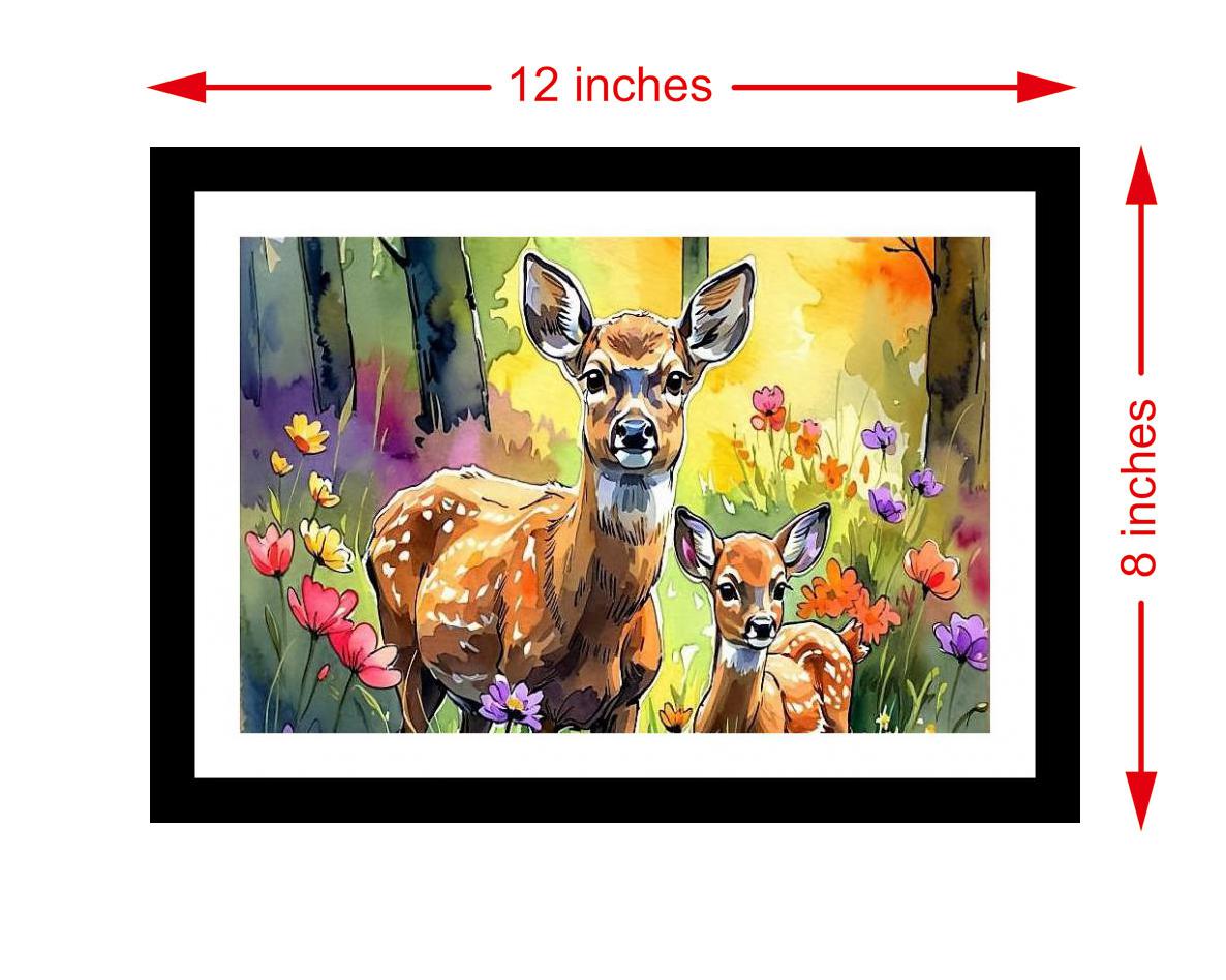 A serene masterpiece: mother and fawn deer, wildflower meadow, captures nature's beauty and tranquility. The colors are vibrant and true, and the print quality captures every exquisite detail of the portrait. The portrait's digital reprint boasts striking composition; a masterful blend of classic art and modern clarity. Versatile Decor: Ideal for enhancing the aesthetic appeal of living rooms and bedrooms Enhanced Durability: Weather-shield laminated digital print for lasting vibrancy and protection Premium Framing: Constructed with a high-quality, durable fiber frame for long-term stability Precise Dimensions: 30 cm x 20 cm x 1 cm