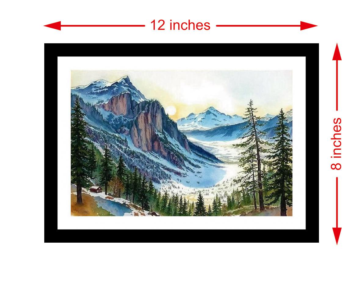 A breathtaking, serene winter sunrise paints a snow-covered mountain valley with a cozy cabin haven. The colors are vibrant, the print is crisp, and the portrait leaps off the page - stunning! The digital reprint boasts a striking composition, breathing new life into this already beautiful portrait. Versatile Decor: Ideal for enhancing the aesthetic appeal of living rooms and bedrooms Enhanced Durability: Weather-shield laminated digital print for lasting vibrancy and protection Premium Framing: Constructed with a high-quality, durable fiber frame for long-term stability Precise Dimensions: 30 cm x 20 cm x 1 cm