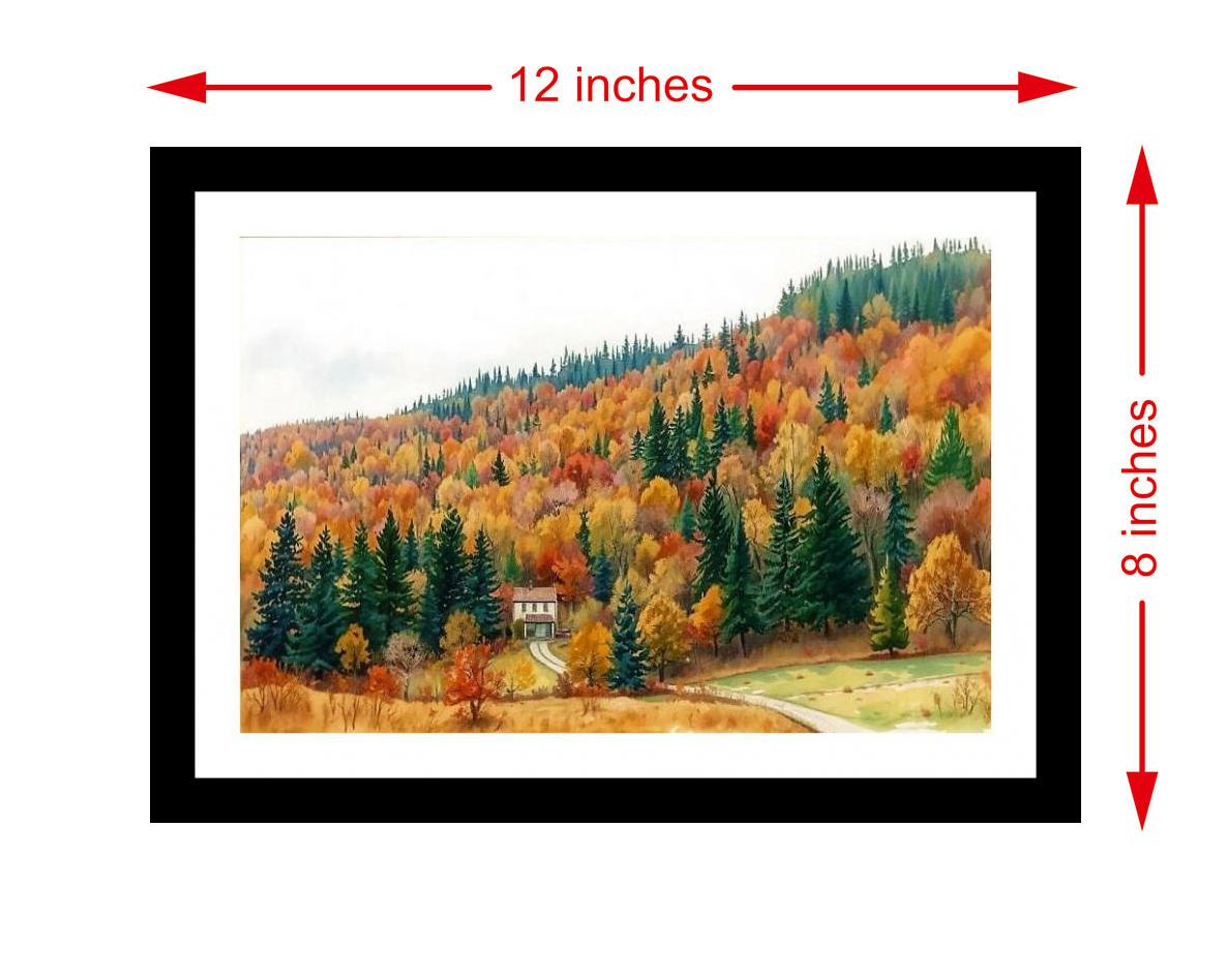 A stunning autumn scene; cozy house glows amidst vibrant fall foliage. The reprint bursts with vibrant color and captures every delicate detail of the original portrait. The digital reprint's striking composition elevates the portrait's beauty, breathing new life into the artwork. Versatile Decor: Ideal for enhancing the aesthetic appeal of living rooms and bedrooms Enhanced Durability: Weather-shield laminated digital print for lasting vibrancy and protection Premium Framing: Constructed with a high-quality, durable fiber frame for long-term stability Precise Dimensions: 30 cm x 20 cm x 1 cm