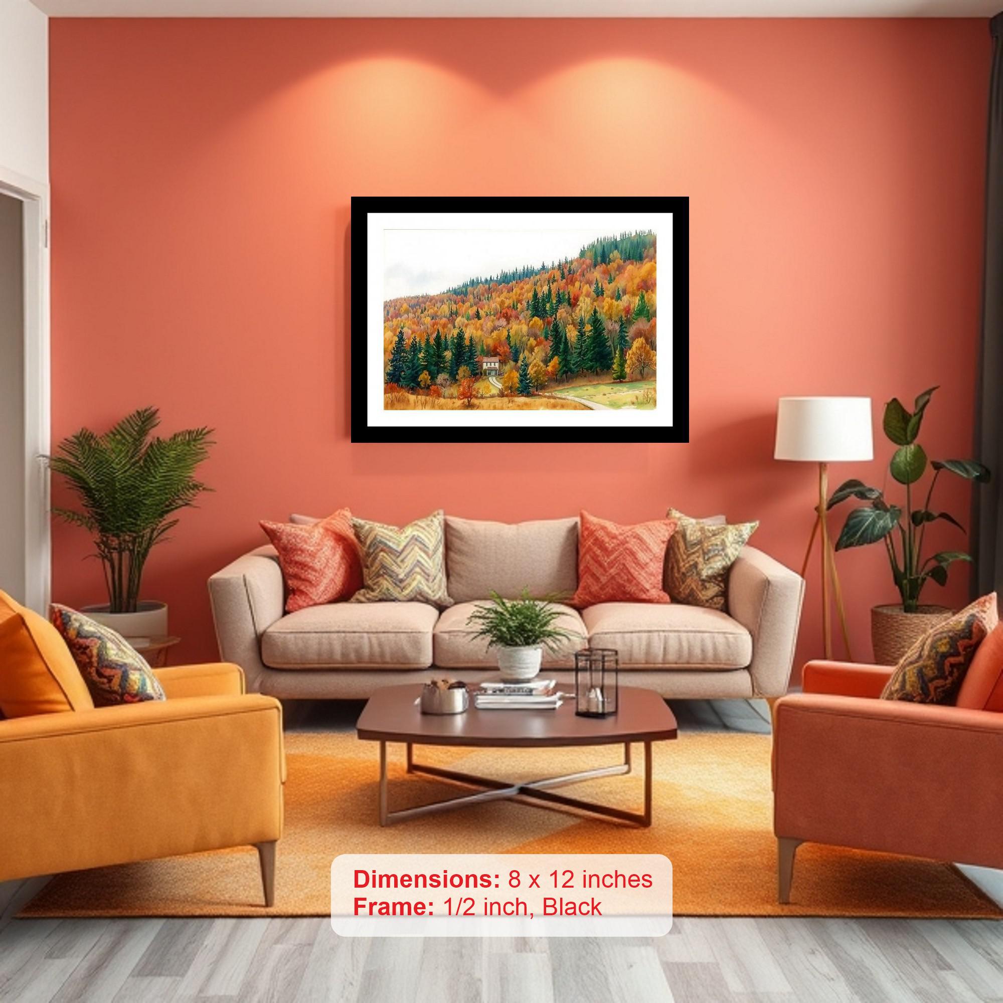 Adorn your walls with the timeless beauty of our "Autumn Hillside Haven" digital art print. This elegant reproduction captures the warmth and charm of a cozy house nestled comfortably into a vibrant hillside, painted in the breathtaking hues of autumn. Imagine crisp air, falling leaves, and the inviting glow emanating from the windows of this idyllic home. The artwork evokes feelings of peace, tranquility, and the simple joys of the season. Reproduced using high-quality digital printing techniques, this piece ensures exceptional clarity, rich color saturation, and lasting detail, preserving the integrity of the original artistic vision. The classic black frame complements the artwork beautifully, adding a touch of sophistication and making it a seamless addition to any decor style, from traditional to modern. Whether you're looking to enhance your living room, bedroom, office, or any other space, this framed print will bring a touch of warmth and artistic flair, creating a captivating focal point that sparks conversation and evokes cherished memories. Perfect as a thoughtful gift for housewarmings, birthdays, holidays, or any occasion, the "Autumn Hillside Haven" is more than just a decoration; it's a window into a world of comfort, beauty, and timeless appeal.