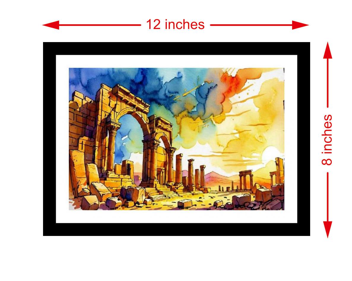 The artwork masterfully captures the evocative beauty of ancient ruins bathed in a glorious sunset's golden light. Colors are vibrant and the print is incredibly sharp, capturing every detail of the beautiful portrait. The digital reprint's striking composition beautifully captures the portrait's essence, a true visual delight. Versatile Decor: Ideal for enhancing the aesthetic appeal of living rooms and bedrooms Enhanced Durability: Weather-shield laminated digital print for lasting vibrancy and protection Premium Framing: Constructed with a high-quality, durable fiber frame for long-term stability Precise Dimensions: 30 cm x 20 cm x 1 cm