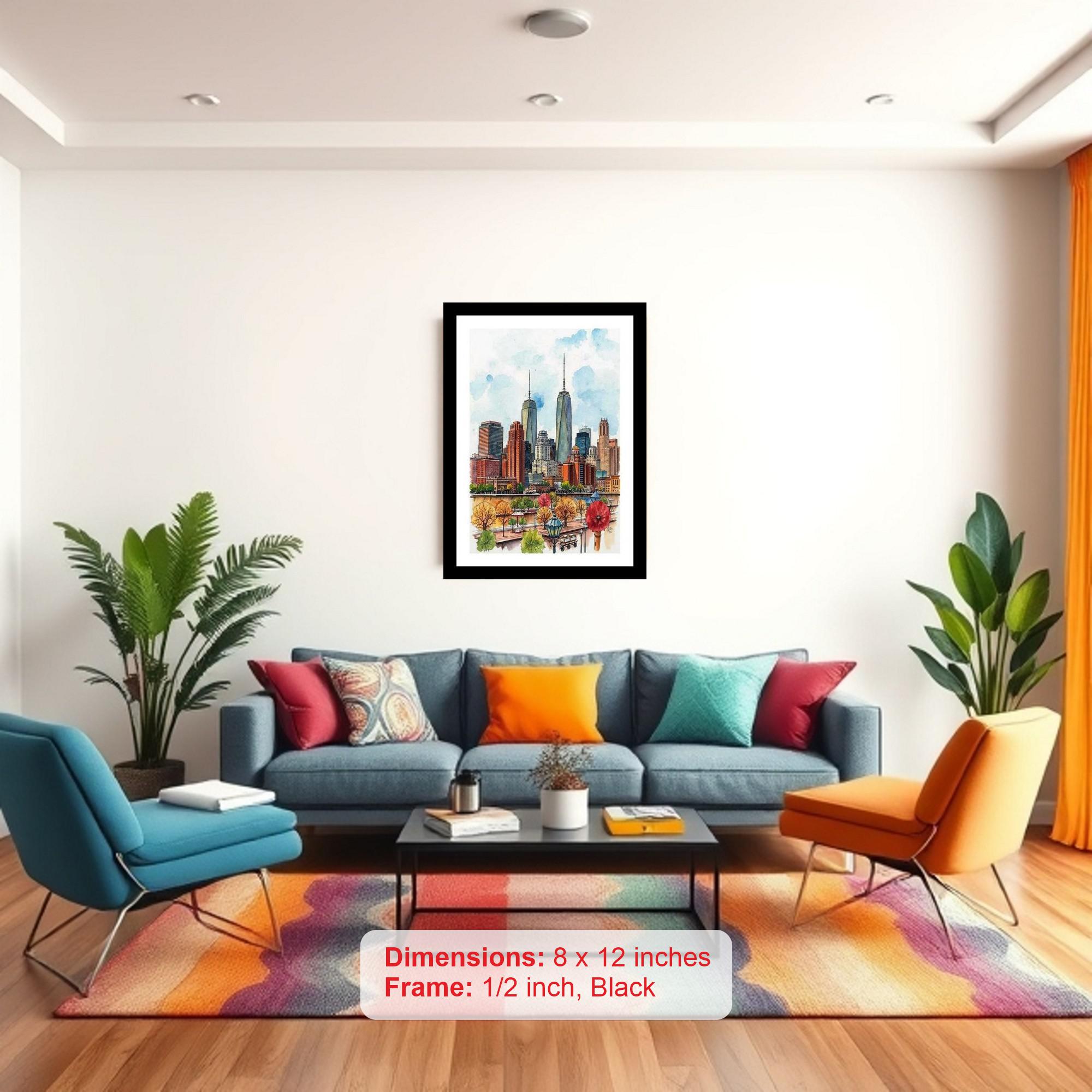 Immerse yourself in the vibrant energy of urban life with this stunning framed digital reprint of a modern cityscape watercolor painting. This captivating artwork features a dynamic skyline dominated by numerous towering high-rises, rendered in a fluid and expressive watercolor style. The artist expertly captures the essence of the metropolis, using a harmonious blend of colors to depict the interplay of light and shadow on the glass and steel facades of the buildings. Soft blues, greens, and grays evoke the atmosphere of a bustling city, while pops of vibrant color add a touch of excitement and intrigue. Each brushstroke conveys a sense of movement and dynamism, bringing the cityscape to life on your wall. This high-quality digital reprint faithfully recreates the delicate washes and intricate details of the original watercolor, ensuring that every nuance of the artist's vision is preserved. The print is expertly framed, ready to hang and instantly elevate any space. The sleek and modern frame complements the artwork perfectly, adding a touch of sophistication and elegance. Whether you're looking to add a focal point to your living room, create a stylish office environment, or simply bring the beauty of the city into your home, this framed cityscape print is the perfect choice. It's a timeless piece of art that will be admired for years to come, sparking conversation and inspiring a sense of wanderlust. This cityscape art is perfect for anyone who appreciates modern art, urban landscapes, or simply wants to add a touch of sophistication to their home or office decor. It also makes a thoughtful and unique gift for art lovers, city dwellers, or anyone who appreciates the beauty of the urban environment. Bring the vibrant energy of the city into your home with this exquisite framed digital reprint.