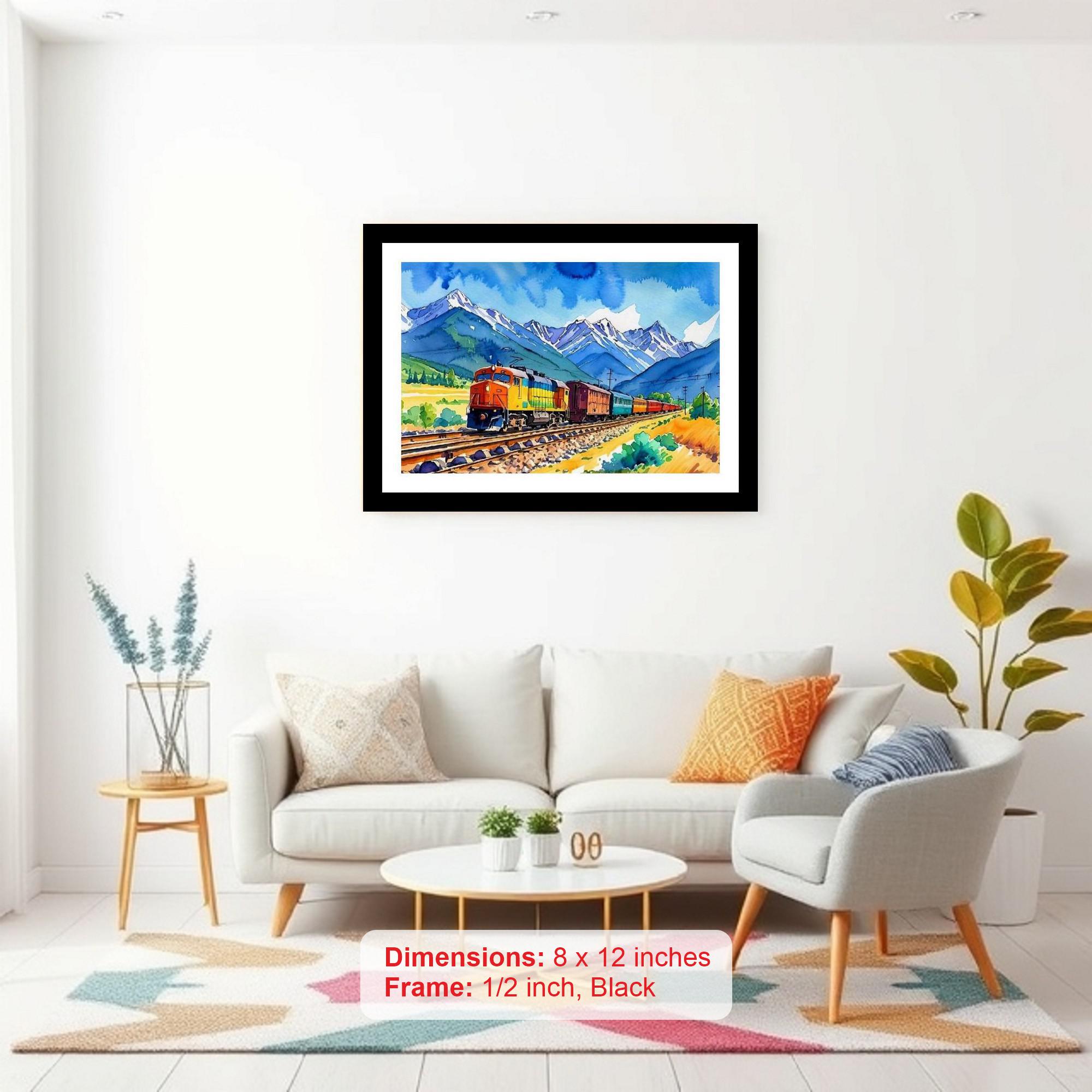 Capture the timeless allure of vintage travel with our exquisitely crafted digital reprint of a stunning portrait featuring a vibrant passenger train traversing a breathtaking mountain landscape, elegantly framed in a golden hued finish. This piece evokes a sense of adventure and nostalgia, transporting you to a bygone era of luxurious rail journeys and scenic vistas. The vibrant colors of the train, set against the majestic backdrop of towering peaks and lush valleys, create a captivating visual narrative that will enhance any living space. The black frame adds a touch of sophisticated elegance, perfectly complementing the artwork and creating a focal point that draws the eye. Ideal for train enthusiasts, art lovers, or anyone seeking to add a touch of vintage charm to their home or office, this framed reprint is a testament to the beauty of classic design and the enduring appeal of breathtaking landscapes. It serves as a conversation starter, a source of inspiration, and a reminder of the golden age of travel. Let this striking piece bring the romance of the rails and the grandeur of the mountains into your everyday life.