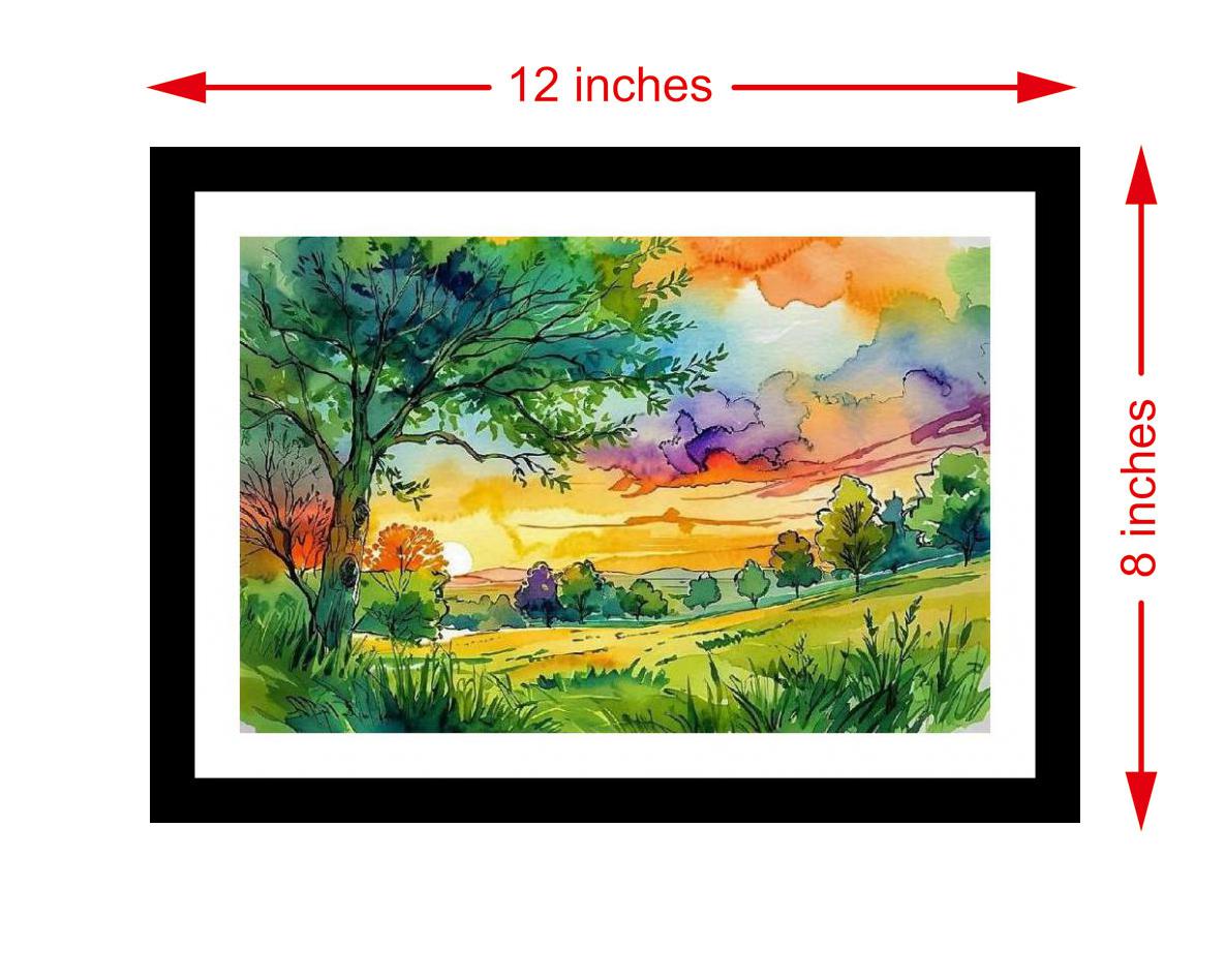 A fiery sunset silhouettes trees, creating a vibrant, breathtaking landscape artwork. Colors vibrant, print sharp - the portrait's beauty truly shines through. The reprint's masterful composition elevates the portrait's beauty, making it truly captivating and timeless. Versatile Decor: Ideal for enhancing the aesthetic appeal of living rooms and bedrooms Enhanced Durability: Weather-shield laminated digital print for lasting vibrancy and protection Premium Framing: Constructed with a high-quality, durable fiber frame for long-term stability Precise Dimensions: 30 cm x 20 cm x 1 cm