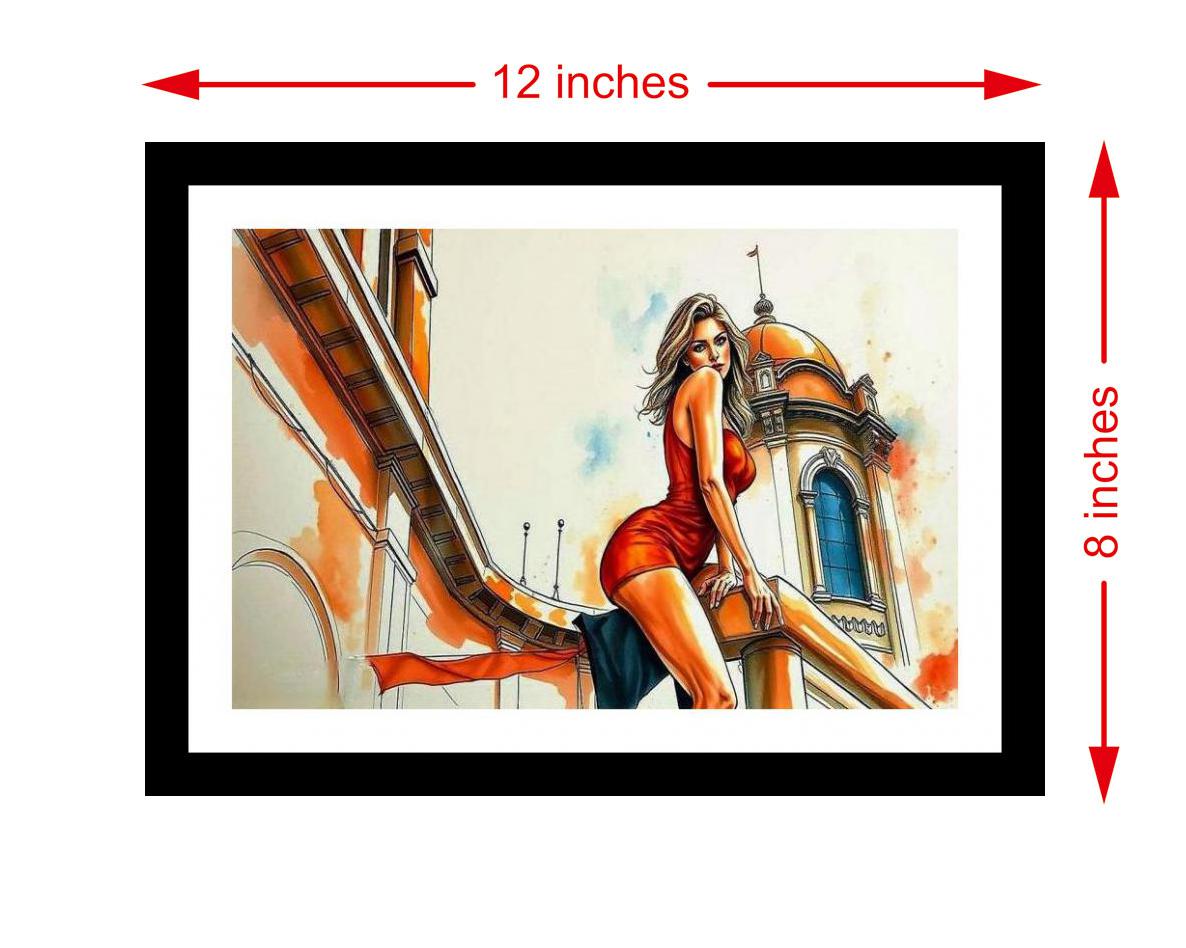 A striking image: red dress pops against grand architecture, a confident woman commanding the scene. The colors burst, the print is sharp; this reprint truly captures the portrait's original beauty. The portrait's digital reprint boasts a striking composition; its clarity and balance are simply breathtaking. Versatile Decor: Ideal for enhancing the aesthetic appeal of living rooms and bedrooms Enhanced Durability: Weather-shield laminated digital print for lasting vibrancy and protection Premium Framing: Constructed with a high-quality, durable fiber frame for long-term stability Precise Dimensions: 30 cm x 20 cm x 1 cm