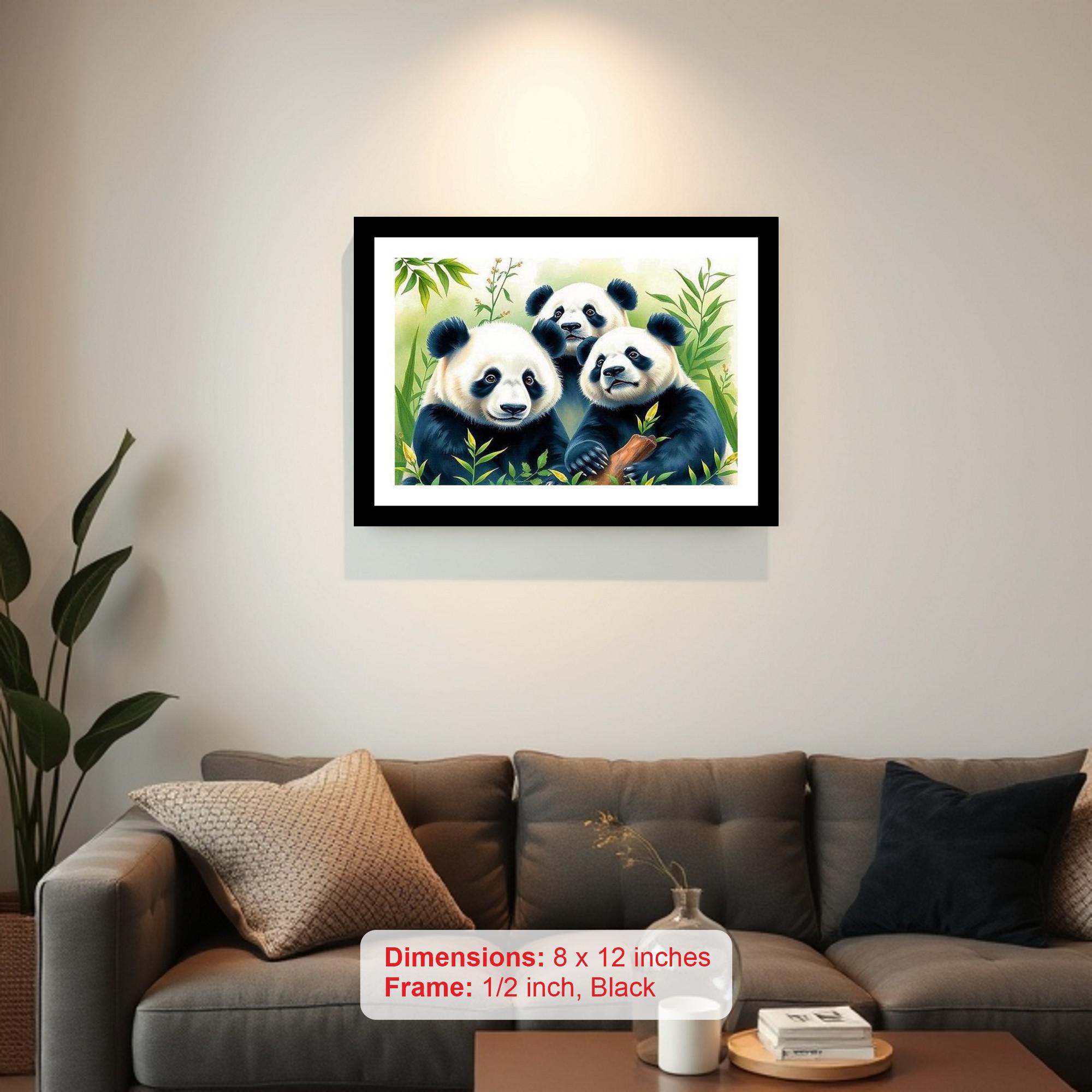 Bring timeless charm to your home with this vintage-inspired digital reprint, showcasing three adorable pandas peacefully enjoying their bamboo forest home. The elegant black frame enhances the artwork's warm tones and adds a touch of sophistication to any room. This delightful piece captures the gentle nature and playful spirit of pandas, making it a perfect addition to nurseries, living rooms, or offices. Its classic aesthetic blends seamlessly with various decor styles, offering a unique and heartwarming focal point. Enjoy the beauty of vintage art with the clarity and vibrancy of modern digital printing.