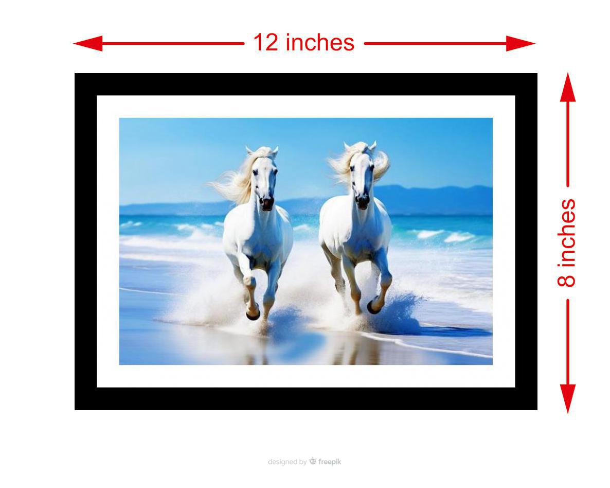 A stunning image capturing the raw power & beauty of two white horses running free on a sun-kissed beach. The colors pop, and the print captures every detail of the original photograph beautifully. The digital reprint boasts a strikingly composed image, beautifully capturing the original photograph's artistry. Versatile Decor: Ideal for enhancing the aesthetic appeal of living rooms and bedrooms Enhanced Durability: Weather-shield laminated digital print for lasting vibrancy and protection Premium Framing: Constructed with a high-quality, durable fiber frame for long-term stability Precise Dimensions: 30 cm x 20 cm x 1 cm
