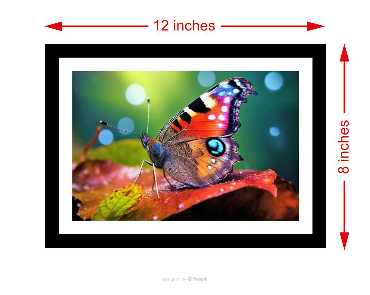 Dew-kissed leaf perfectly showcases the peacock butterfly's vibrant beauty against autumnal hues. Colors are vibrant and the print clarity is breathtaking, a true work of art revived. The digital reprint boasts a striking composition, perfectly capturing the photograph's original beauty. Versatile Decor: Ideal for enhancing the aesthetic appeal of living rooms and bedrooms Enhanced Durability: Weather-shield laminated digital print for lasting vibrancy and protection Premium Framing: Constructed with a high-quality, durable fiber frame for long-term stability Precise Dimensions: 30 cm x 20 cm x 1 cm