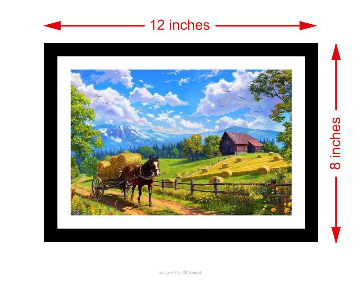 Hay cart ambles down a country road, painting a charming rural scene with farm, mountains & simple beauty. Colors are vibrant and the print captures every delicate detail of the original portrait. Gorgeous! The digital reprint's composition is striking; the portrait's essence shines anew. A visual masterpiece! Versatile Decor: Ideal for enhancing the aesthetic appeal of living rooms and bedrooms Enhanced Durability: Weather-shield laminated digital print for lasting vibrancy and protection Premium Framing: Constructed with a high-quality, durable fiber frame for long-term stability Precise Dimensions: 30 cm x 20 cm x 1 cm