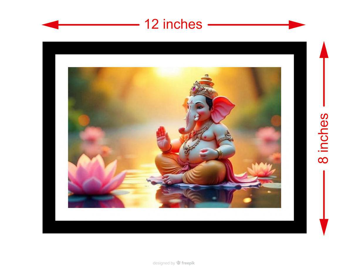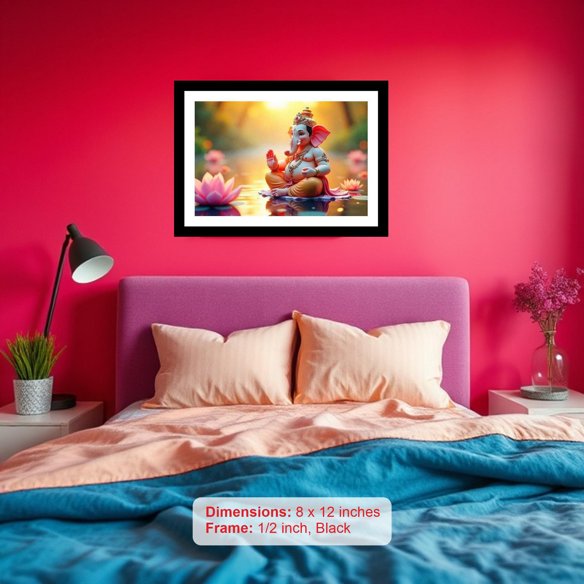 A serene Ganesha amidst lotuses, blessing with wisdom and prosperity, captured beautifully! Colors pop, details are crisp, a true testament to the original's beauty. The digital reprint boasts a striking composition, breathing new life into the photograph's beauty. Versatile Decor: Ideal for enhancing the aesthetic appeal of living rooms and bedrooms Enhanced Durability: Weather-shield laminated digital print for lasting vibrancy and protection Premium Framing: Constructed with a high-quality, durable fiber frame for long-term stability Precise Dimensions: 30 cm x 20 cm x 1 cm