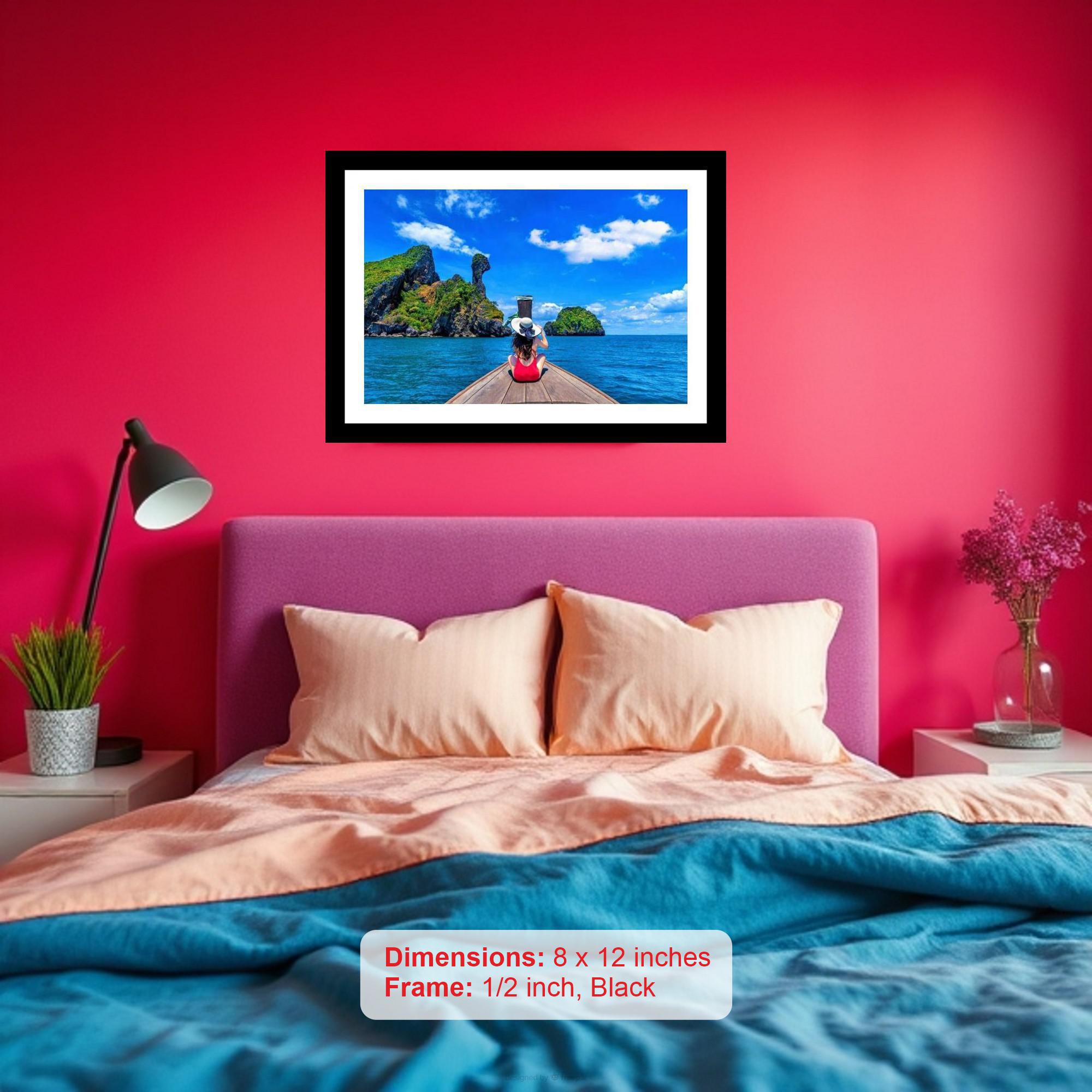 Escape to paradise with our classic black framed digital reprint showcasing island hopping bliss! This elegant photograph captures the breathtaking beauty of turquoise waters, lush islands, and sunny skies. A perfect touch of sophisticated wanderlust for your home or office. The black frame adds a touch of timeless charm, complementing the vibrant imagery and creating a stunning focal point. Bring the allure of tropical escape into your space with this exquisite piece of art!