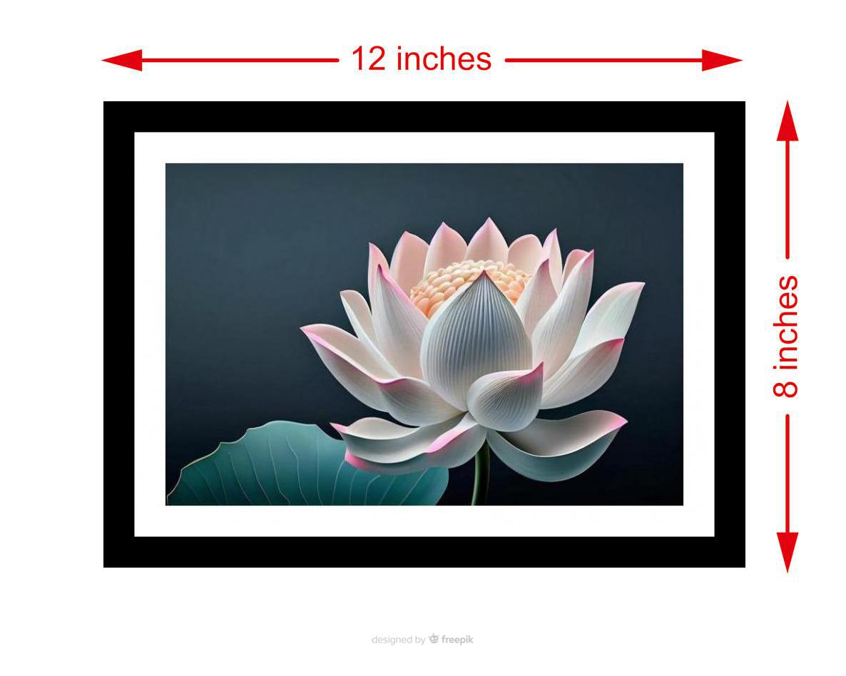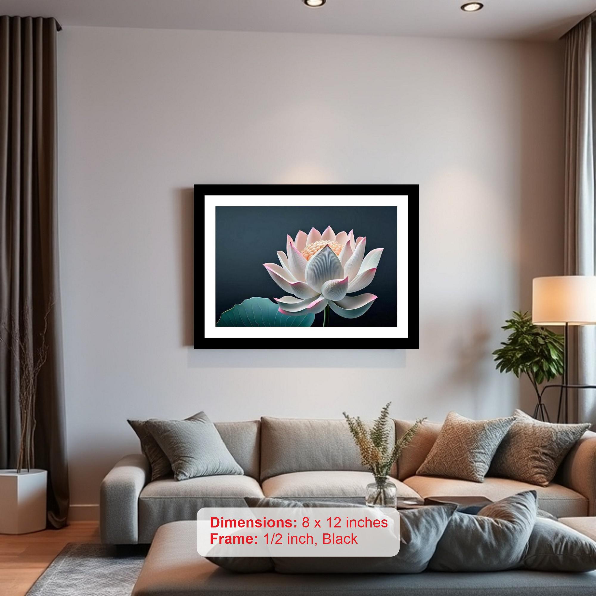 A stunningly serene lotus blooms, its delicate petals radiating against a dark canvas. The reprint's vibrant colors and crisp details truly bring this gorgeous photograph to life. The digital reprint boasts a striking composition, breathing new life into the photograph's original beauty. Versatile Decor: Ideal for enhancing the aesthetic appeal of living rooms and bedrooms Enhanced Durability: Weather-shield laminated digital print for lasting vibrancy and protection Premium Framing: Constructed with a high-quality, durable fiber frame for long-term stability Precise Dimensions: 30 cm x 20 cm x 1 cm